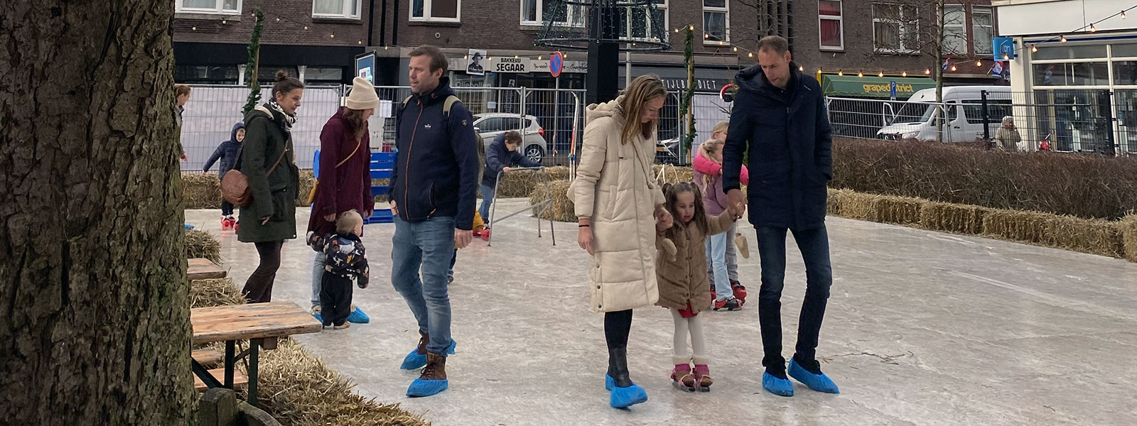 De schaatsbaan is een initiatief van Biz Fahrenheitstraat, Stichting Bewonersorganisatie Bomenbuurt en Support Markt.